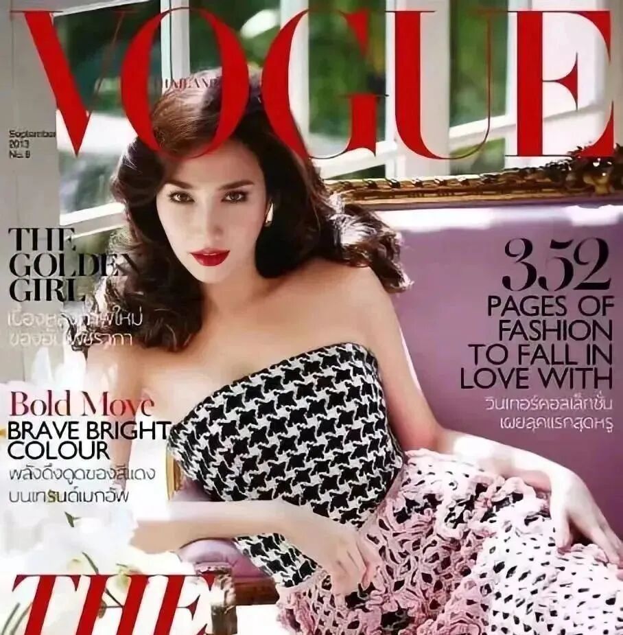 泰版的VOGUE是2013年才創刊,最開始登封的人清一色全是模特,而Aump是第一位拿下封面的泰國女明星。
