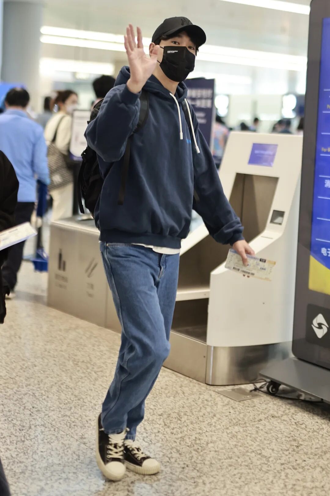 同樣是連帽衛衣,搭上牛仔褲和板鞋就會更日常一點。背上雙肩包、戴上棒球帽的趙又廷是不是也很像校園轉角遇到的學長?