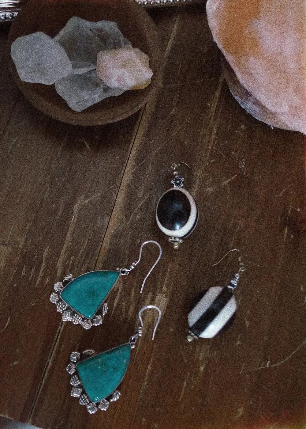 第二副松石耳環,可以回去看上期我拍的藏服照片,戴的就是自己買的耳環;
