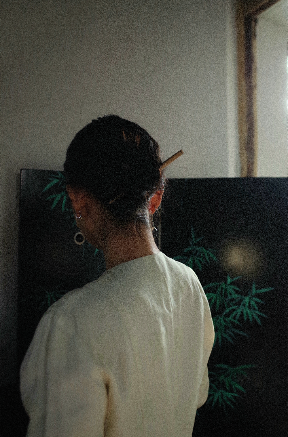 簪子的材質也是犛牛骨,頂上刻著蓮花,老闆一手握著簪子一手轉啊轉我的頭髮,就把頭髮盤好了。現場學不會,只能拍下視頻回家自己練習,不過,現在我也已經很熟練了!
