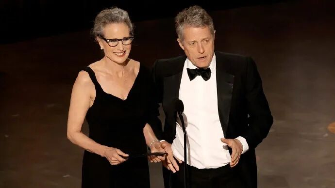 老搭檔安迪·麥克道威爾和休·格蘭特一起頒獎,黑色系禮服優雅而沉穩。
