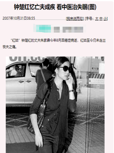 06年,朱家鼎被查出患上了大腸癌,鐘楚紅讓他積極治療,時刻不離地陪著他。不過發現時已經太晚了,第二年,病魔就帶走了他。