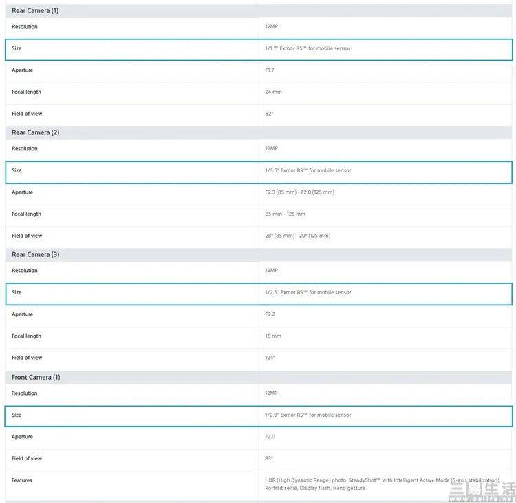 索尼Xperia 1 IV的影像配置,可以看到新機後攝的“底”幾乎都變大了