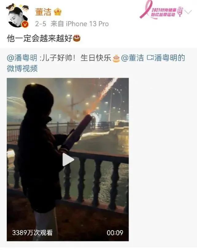 生日當天,潘粵明發微博給兒子慶生,並配文“兒子好帥!生日快樂”。