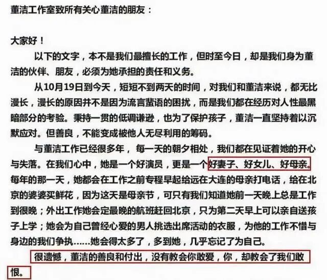 2012年10月,潘粵明和董潔結婚的第四個年頭,董潔突然發了一份聲明。