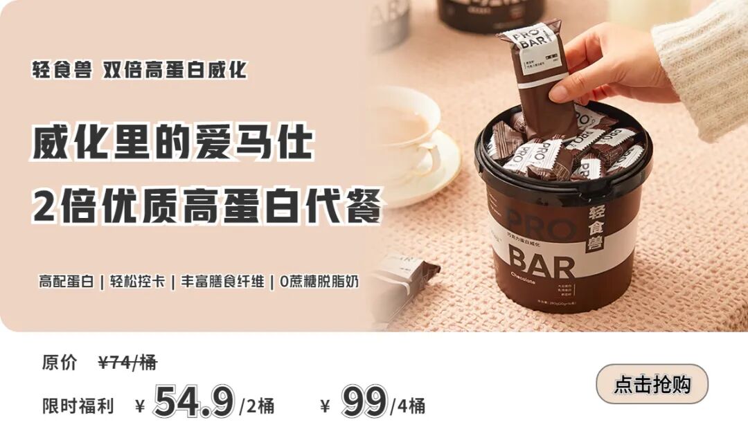首頁減脂期都給我吃!真的吃不停嘴!一根滿滿高蛋白,代餐滿分,狂囤4桶! 減脂期都給我吃!真的吃不停嘴!一根滿滿高蛋白,代餐滿分,狂囤4桶!作者: Admin / 2023 年 2 月 15 日 誰能理解,越是減脂期,嘴巴越是真的時刻都很饞! 尤其天一冷,簡直想抱著餅乾啃! 作為實實在在的餅乾控,各種餅乾都喜歡吃,尤其愛威化,但是威化餅的熱量真的賊高! 直到最近被朋友安利了這款【輕食獸雙倍高蛋白威化】,還有黑芝麻奇亞籽、巧克力2種口味可選! 0添加蔗糖,0反式脂肪,富含蛋白質和膳食纖維,熱量相對低,關鍵飽腹感槓槓的,吃的沒顧慮! 巧克力脆皮藏著酥軟奶香夾心,完全滿足甜品控的心!不甜膩,好吃到舔手指! 桶裝每桶14根,每個餅乾都是獨立包裝,買點放包包裡,什麼時候饞了隨便吃,解饞又不怕胖,贊! 作為天貓賣爆500w的高蛋白威化餅乾,天貓超市一桶賣到64元! 因為之前有銷量保證,我們為吃貨們爭取到了羊毛福利: 兩桶到手只要54.9元!!! 同事們都搶瘋了!可愛大氣的手提桶包裝,尤其拿來送人,合適的嘞~ 輕食獸雙倍高蛋白威化桶 輕食控卡 兩種口味可選 原價 ¥74一桶 粉絲福利價 ¥54.9/2桶 點擊下圖即可購買 作為新西蘭SMEAL LIMITED孵化的健康輕食品牌,BEAST輕食獸嚴選全球食材,致力於讓休閒食品變得更健康好吃的同時控制熱量。 這款威化餅乾更是每一根都含有充沛的蛋白質、脂肪以及膳食纖維! 連明星都為它打call~ 作為威化餅乾,誰能想它1根只有100卡左右! 蛋白質5.1g,也就是說它的蛋白質含量約等於27.4g的牛肉,熱量才是常見巧克力威化餅一半左右! 讓人以更科學的方式減脂增肌,不一味捱餓,實在算得上滿分代餐! 而且它還是無反式脂肪、0添加蔗糖! 選用脫脂牛奶,安全健康,不管是老人還是小孩吃起來都超放心! 輕食獸雙倍高蛋白威化桶 輕食控卡 兩種口味可選 原價 ¥74一桶 粉絲福利價 ¥54.9/2桶 點擊下圖即可購買 除了蛋白質含量高,這款威化餅乾還巨!好!吃!是吃一塊想兩塊的那種好吃! 巧克力味 威化餅的外層裹了一層滿滿的巧克力醬,每咬一口,都能感受到巧克力的濃醇、奶油的香甜。 口感絲滑,吃完一塊幸福感和滿足感爆棚!雖然甜甜的,卻也不膩,又香又脆,作為吃貨很難不被俘獲! 黑芝麻奇亞籽味 濃郁黑芝麻風味,添加奇亞籽顆粒,芝麻的油香和威化的乾脆出乎意料的搭,入嘴醇香不甜膩。 咬下去口感脆爽,富有層次,還有滿滿的芝麻香,是健康的味道!一次吃一桶毫不誇張! 輕食獸雙倍高蛋白威化桶 輕食控卡 兩種口味可選 原價 ¥74一桶 粉絲福利價 ¥54.9/2桶 點擊下圖即可購買 代餐僅僅熱量低,但缺乏人體必需的營養元素攝入,這樣的代餐吃久了對身體並沒什麼好處。 輕食獸完全考慮到這點!豐富的蛋白質和膳食纖維加上絕美口味,放心吃沒負擔! 不光減脂,平常用來當零食也是實打實的健康,尤其家裡有老人孩子,它都是不可多得的零食首選! 飽腹感真的很強!早上吃一兩根,再配杯牛奶或咖啡,一上午都不會感到餓!平時貪嘴吃上一塊也不會有罪惡感,太幸福了! 日常嘴饞來幾塊;早上用它做早餐;下午茶充飢……兩桶才幾十塊,這不多囤幾桶都說不過去! 輕食獸雙倍高蛋白威化桶 輕食控卡 兩種口味可選 原價 ¥74一桶 粉絲福利價 ¥54.9/2桶 點擊下圖即可購買