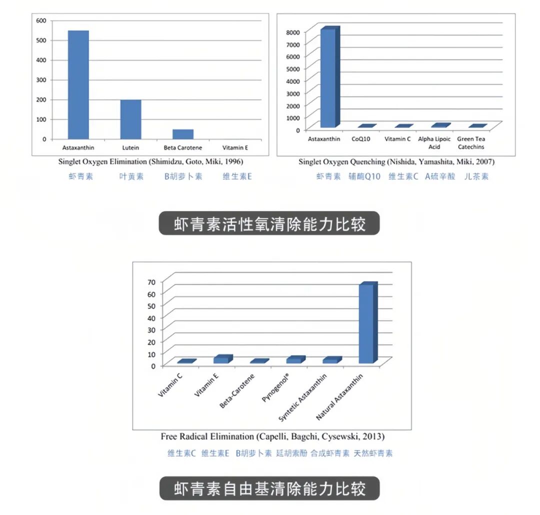 畢竟蝦青素不是一般的強,它的抗氧化能力是維生素E的110倍,輔酶Q10的800倍,維生素C的6000倍。