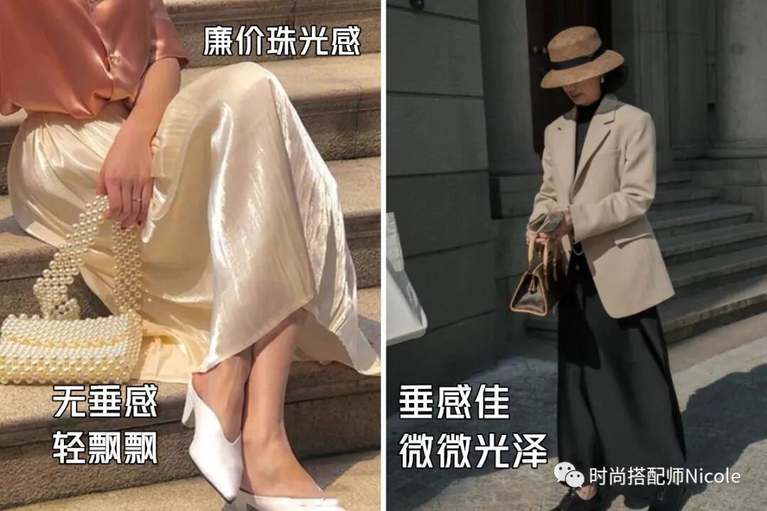 緞面裙選擇面料很關鍵,的時候要注意不要選擇那種輕飄飄無垂感,還充滿廉價珠光感的,要選擇真絲或者重磅真絲這類有垂感、光澤自然的面料。