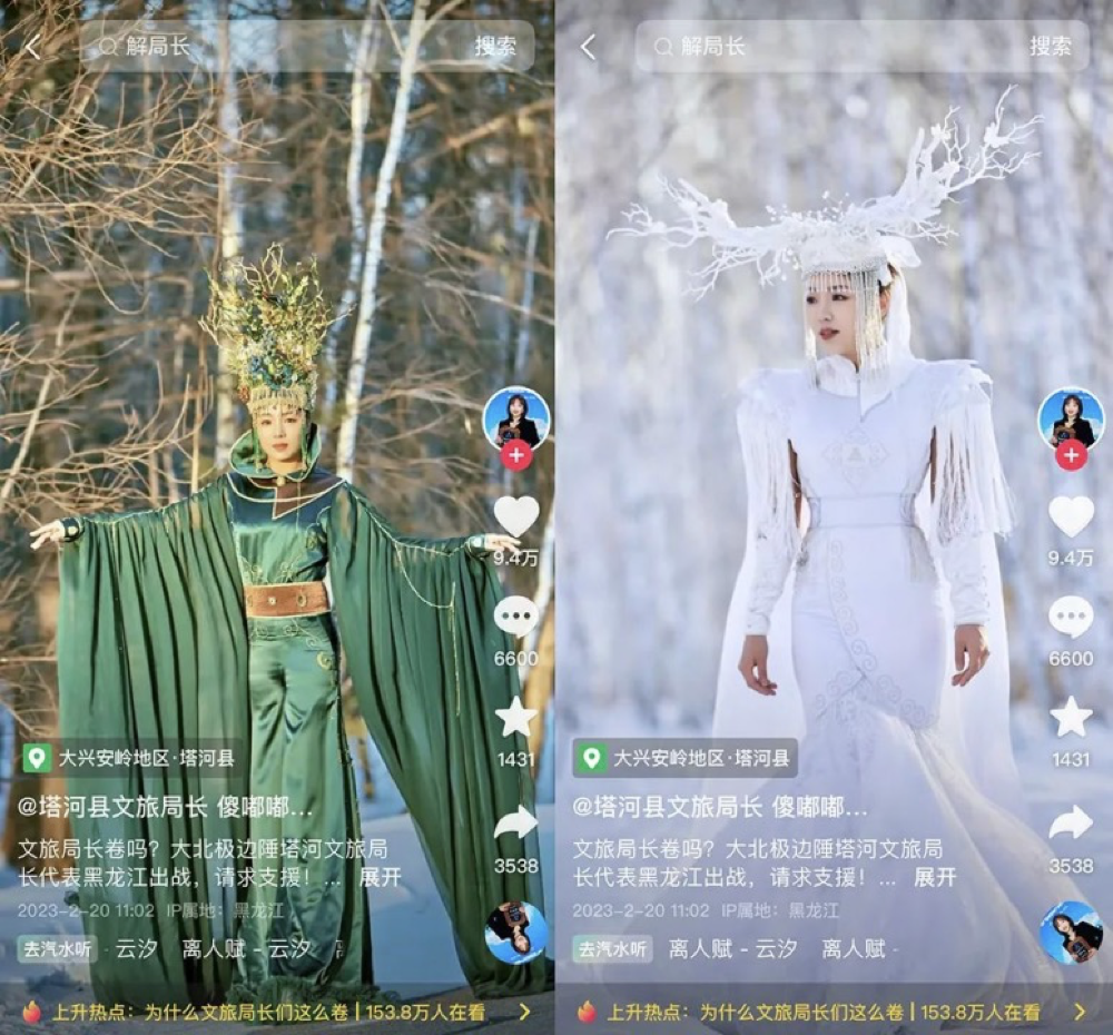 銀裝素裹的黑龍江塔河縣,零下20℃的天氣,文旅局長都波身穿長裙,戴鹿角頭飾,一舉衝上熱搜。