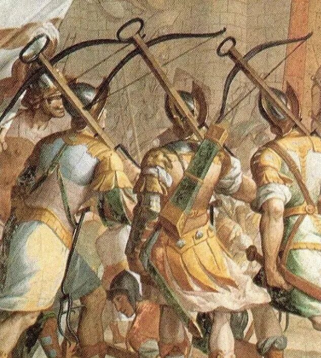 然而,十字弩這種直射類武器並不能有效殺傷佈置在主力戰線身後的長弓兵。在克雷西、普瓦捷等會戰中,英軍長弓兵只要進入射程,便使“遮天蔽日的豪雨從天國驟降而至”,密集的箭雨很快就驅散了只有輕甲護身的十字弩兵。
