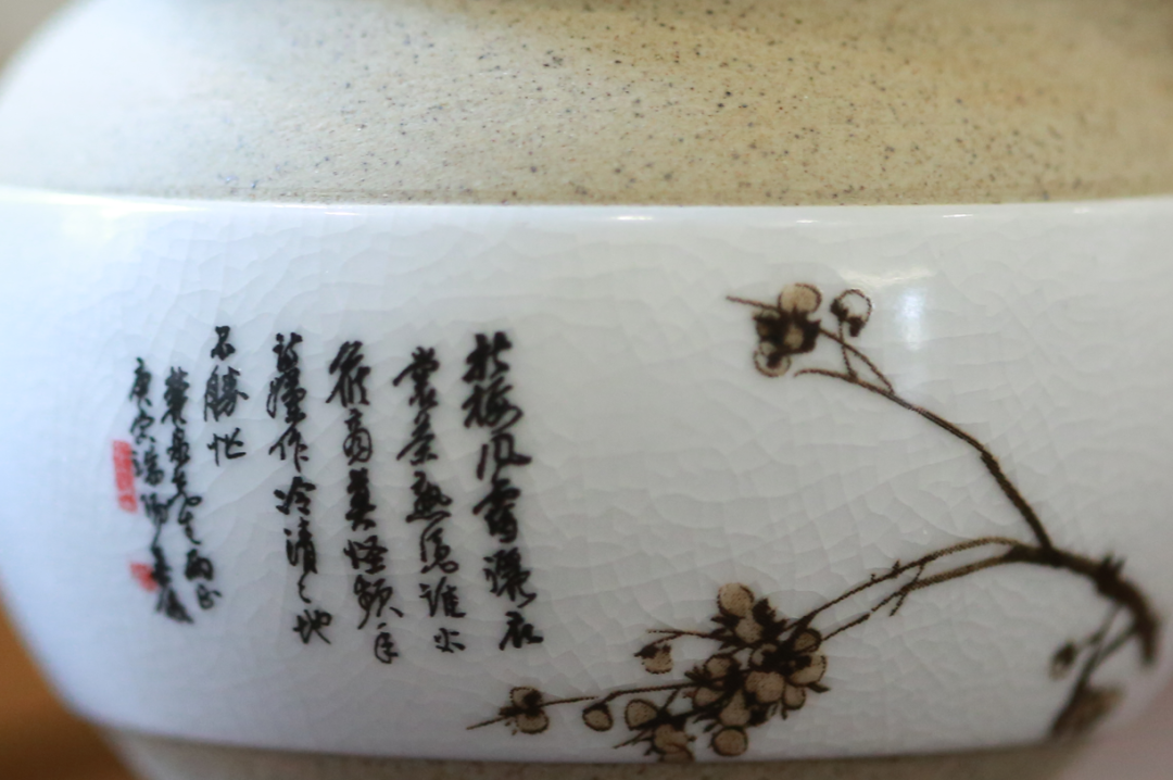 ▲有紫砂的寧靜,冰裂釉的光滑細膩,杯中梅花比孤山上的梅花還美