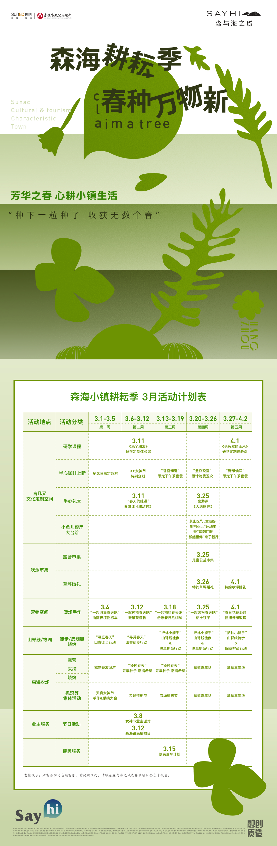 “森海耕耘季–312植樹節”,我們向小鎮業主,媒體朋友及一直關注森海的老友們發出了邀請,一起在森海種下一棵樹,為這座5000畝小鎮種下整個春天。