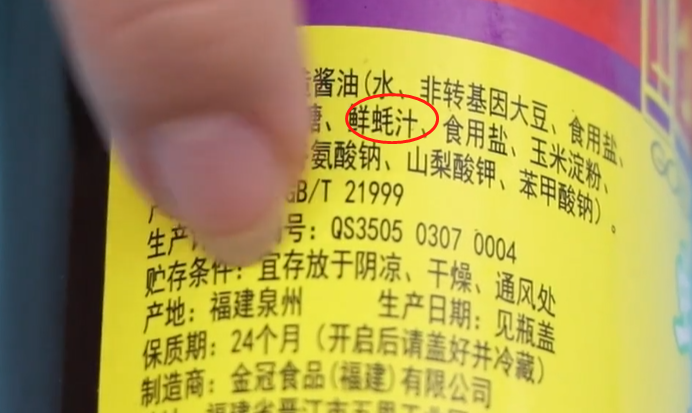 第三個方法,我們可以看一下蠔油瓶子上面的配料表,看配料表上有沒有蠔汁,如果有的話,那就說明是真的蠔油。