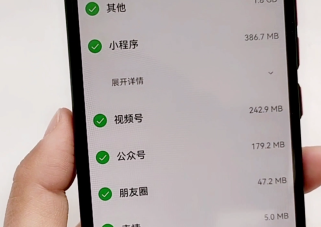 這個裡邊有類別,比如說其他小程序或者是視頻號、朋友圈,如果全部不需要,我們直接點擊清理就可以了,但是如果有一些重要的東西我們需要使用,我們就可以把這個不需要的清理,選中之後點擊清理,點擊清理清理完成之後我們返回。
