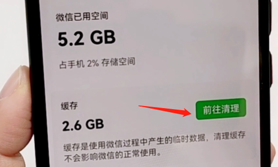 現在我們可以看到微信已經用了5.2gB的空間,因為我經常清理,所以說這邊還算比較乾淨,你們沒有經常清理的,可以看一下你們的微信佔用了多少的空間。接下來就可以清除緩存和聊天記錄了,我們看一下緩存有這麼多,點擊清理緩存前往清理。