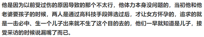 一個小道消息,不一定真啊,但是我覺得可能性很高,就是生育能力不太行的那個男星,
