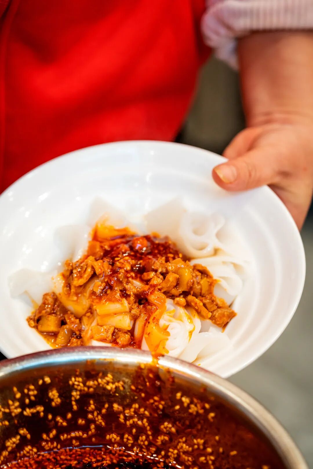 綿厚的米皮點染著紅辣椒油,最為誘人。攝影/陳偉紅