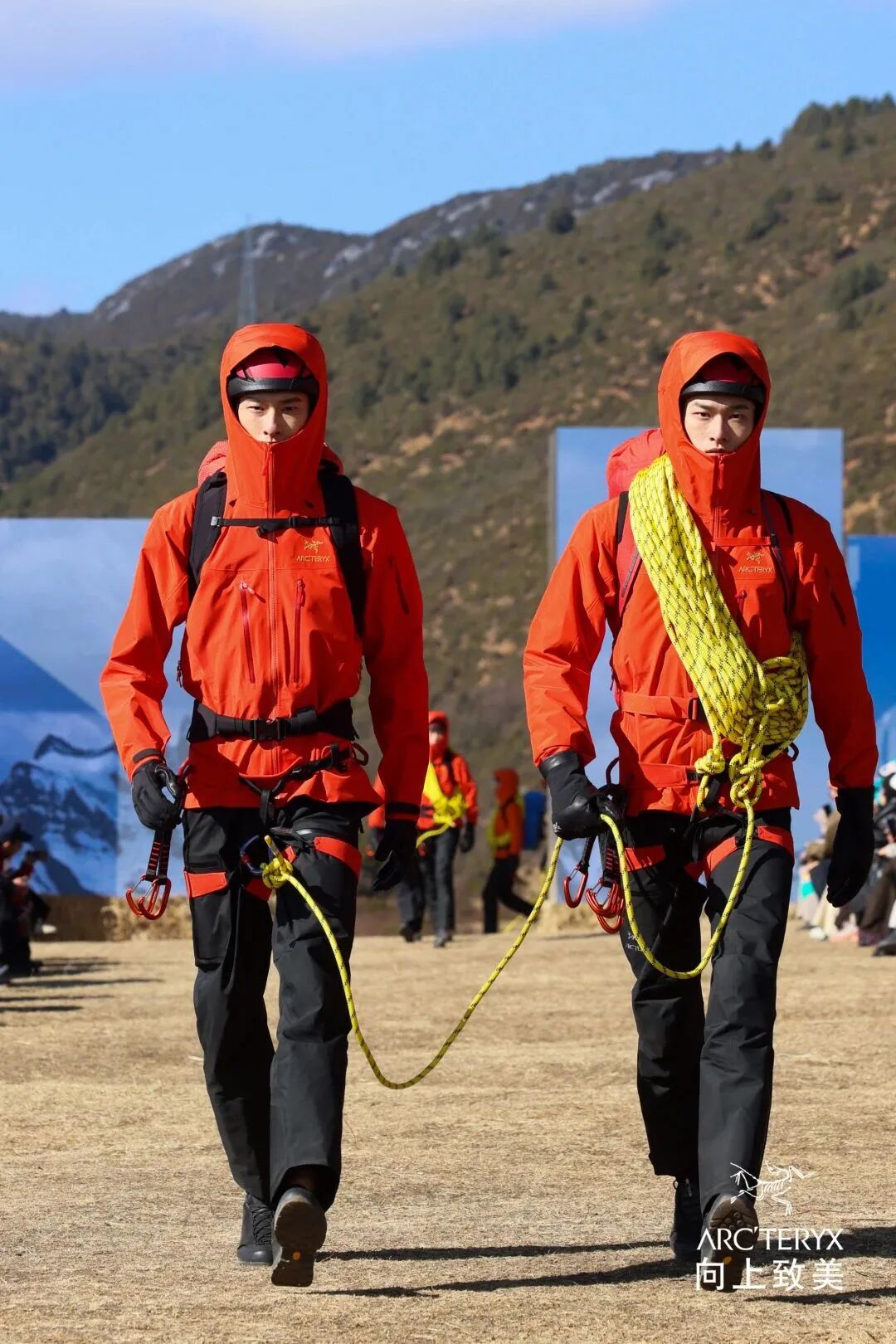 這場秀還有幾位專業攀巖運動員做“模特”,他們身穿ASCENT攀登系列,掛在身上的“裝飾品”可是他們攀登時真實使用的繩索。這些繩索大概有30-40斤重,所以,秀場上每走一步都沒有看起來那麼輕鬆。