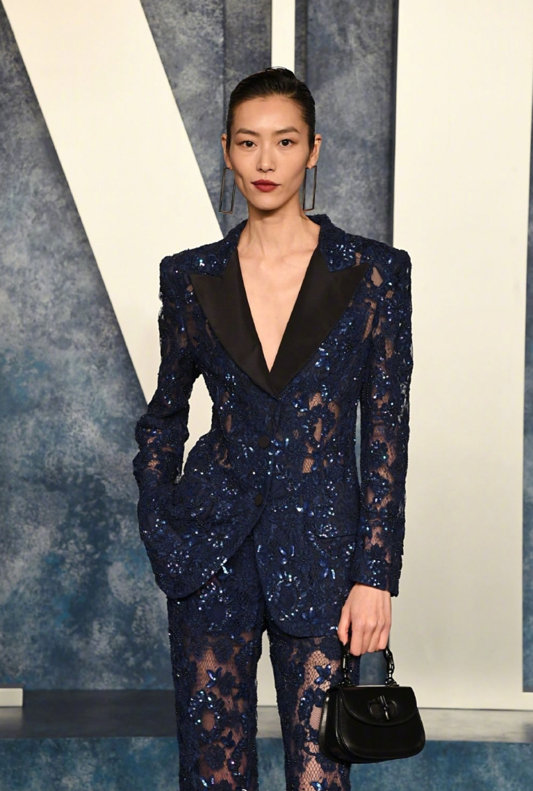 大表姐又是美上熱搜的一套。一襲深藍色蕾絲西裝亮相,她鬆弛的氣質賦予整套Look別樣的魅力,恰到好處的高級與性感大散發。