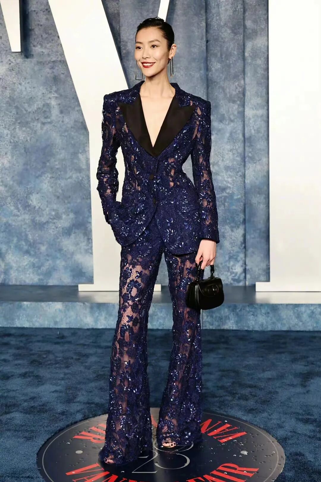 大表姐又是美上熱搜的一套。一襲深藍色蕾絲西裝亮相,她鬆弛的氣質賦予整套Look別樣的魅力,恰到好處的高級與性感大散發。