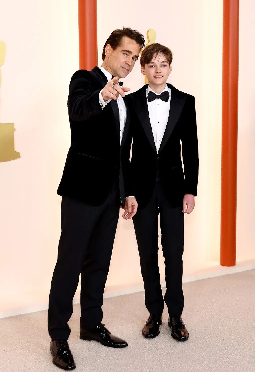 Colin Farrell和Henry Tadeusz Farrell現身第95屆奧斯卡金像獎頒獎典禮