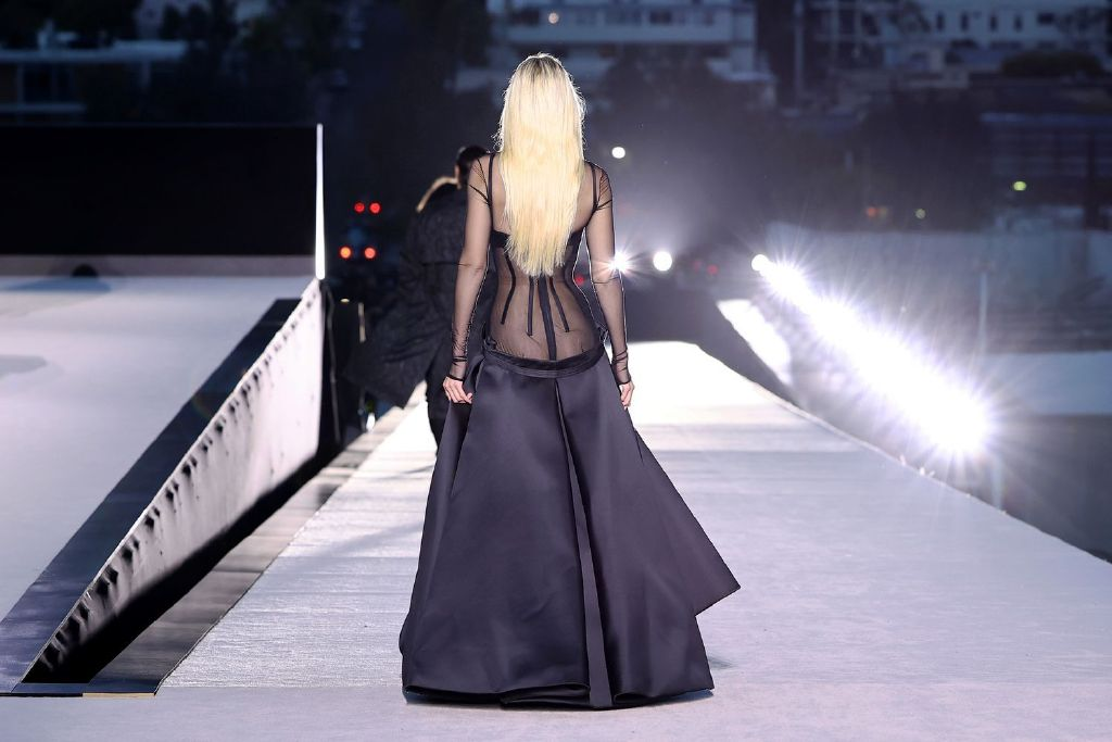 把裙子的薄紗裙襬被綁成一團拽在身後,這個設計簡直太適合魯尼這樣的酷女孩了。