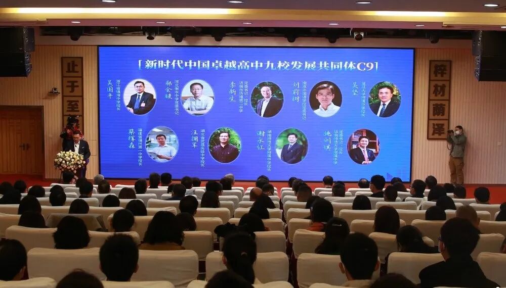 “新時代中國卓越高中九校發展共同體”全稱China’s 9 Excellent High Schools Development Community in The New Era,由中國九所頂尖高中共同發起,包括鎮海中學、河北衡水中學、山東濟南市歷城第二中學、南京外國語學校、復旦大學附屬中學、福建省福州第一中學、湖北省武昌實驗中學、湖南師範大學附屬中學、華南師範大學附屬中學,堪稱高中版“C9”。