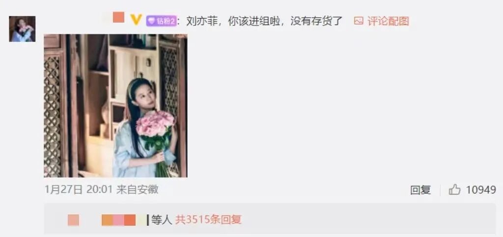粉絲的反應卻是:劉亦菲,你該進組啦,沒有存貨了↓