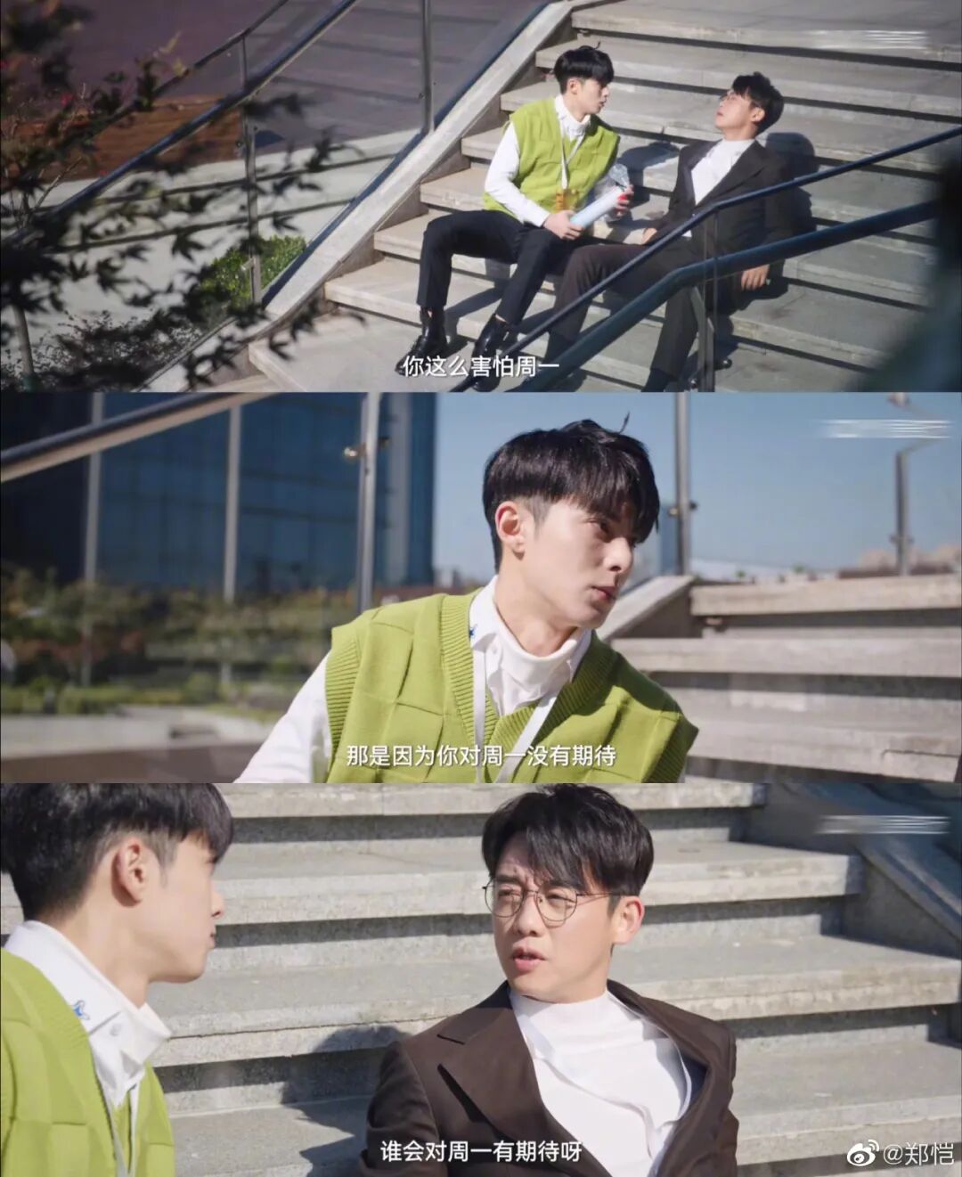 劇中鄭愷擲地有聲地喊出:“誰會對週一有期待呀!”可能已經超過50%披著職場皮、實則搞傻白甜戀愛的“職場劇”了。