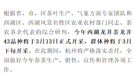 龍井43號頭口鮮,預計3月20日左右發貨(西湖龍井茶為了更好口感,有一個石灰缸收灰的傳統過程,需要幾天時間,只為把最地道的西湖龍井茶和你分享)。