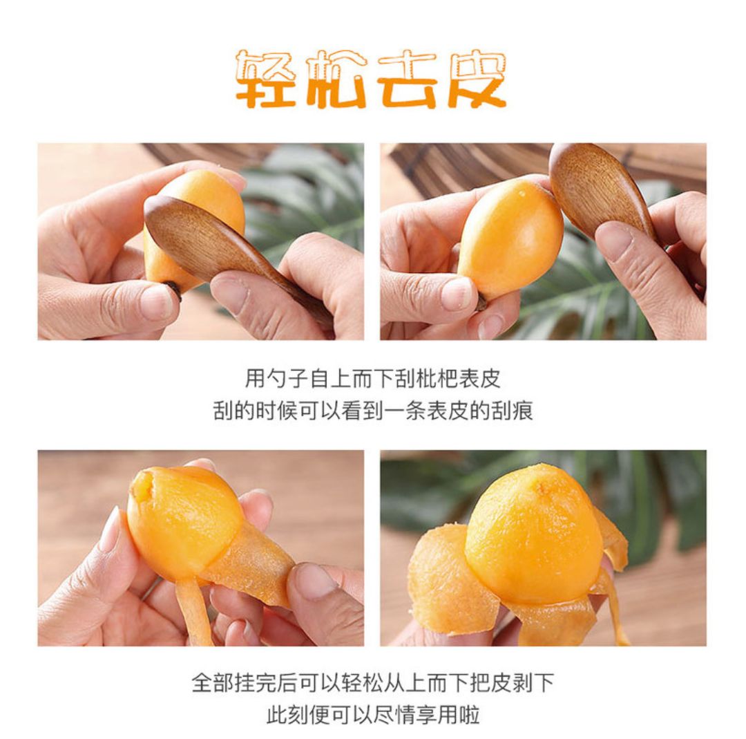 在吃枇杷之前,先用勺子刮一刮表皮上的細毛,果皮就能輕薄的撕開了。