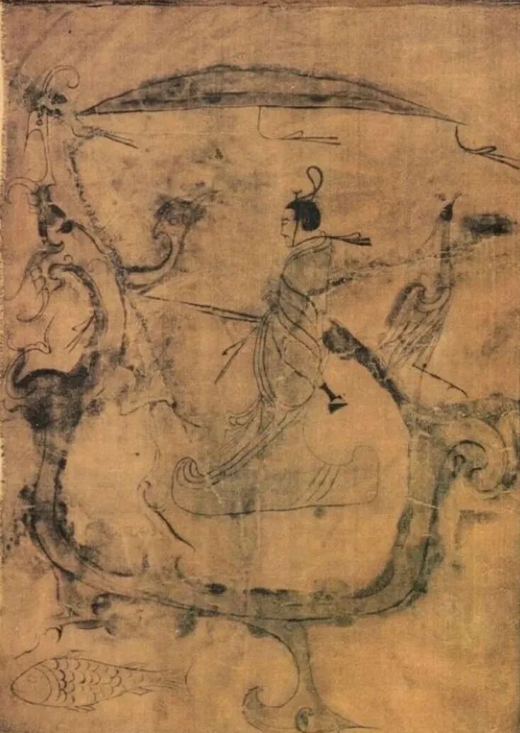 ▲戰國時期《人物御龍帛畫》,左下角的魚為引導靈魂的使者。圖源:網絡