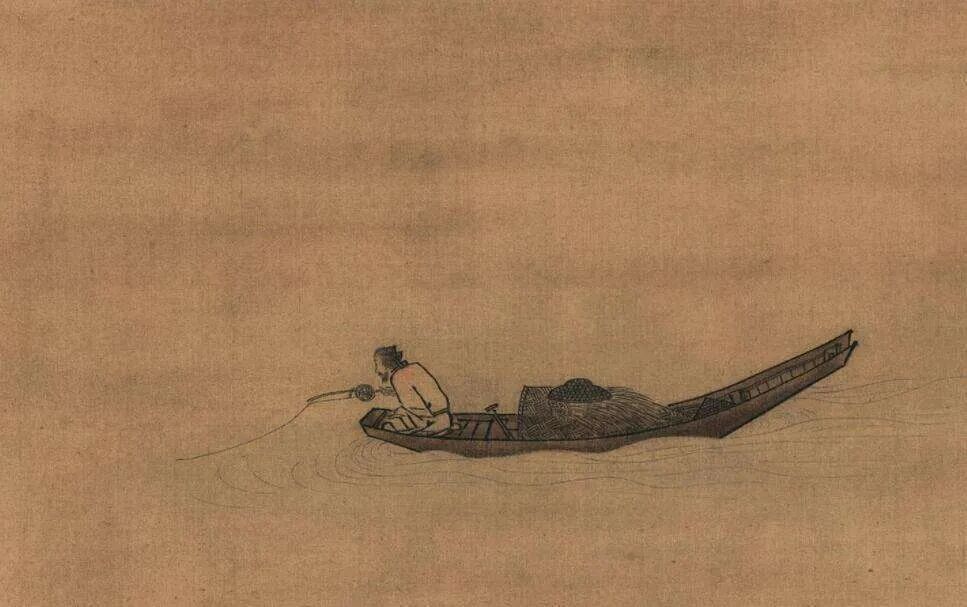 之後,漁父起身,悠然鼓棹而去,他嘴裡唱著一首歌謠:“竹竿籊籊,河水浟浟,相忘為樂,貪餌吞鉤。非夷非惠,聊以忘憂。”