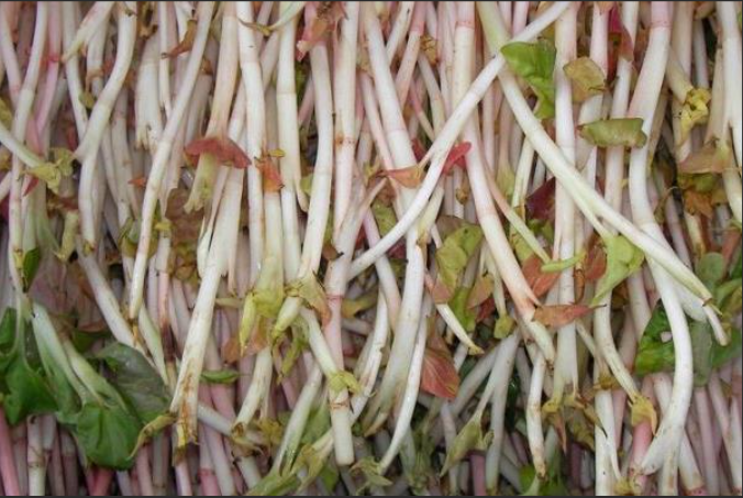 這野菜,當地人叫它“豬鼻拱”、“折耳根”,《本草綱目》記載它:“其葉腥氣,故俗稱魚腥草。”