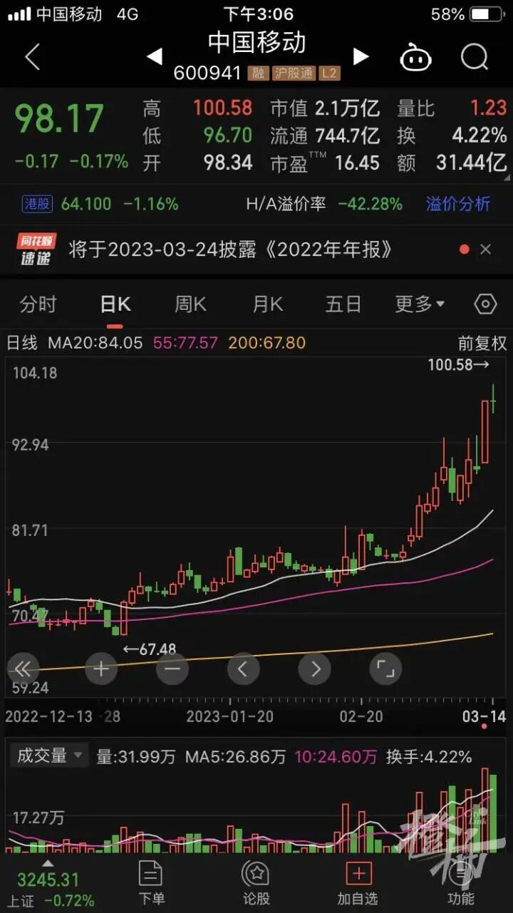 數據顯示,去年年底總市值超千億元的上市公司中,有22家公司今年漲幅超過10%,中字頭個股佔據半壁江山,而漲幅居前的六隻個股均為“中字頭”公司,分別是中國電信、中國移動、中國交建、中國聯通、中興通訊和中國石化,其中中國電信年內漲幅最大,中國移動緊隨其後,其總市值已經超過2.1萬億元,直逼目前A股總市值排行榜第一的貴州茅臺。