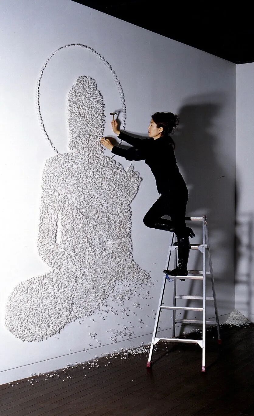 韓國藝術家Ran Hwang與其作品《Buddha Camp》,2006年