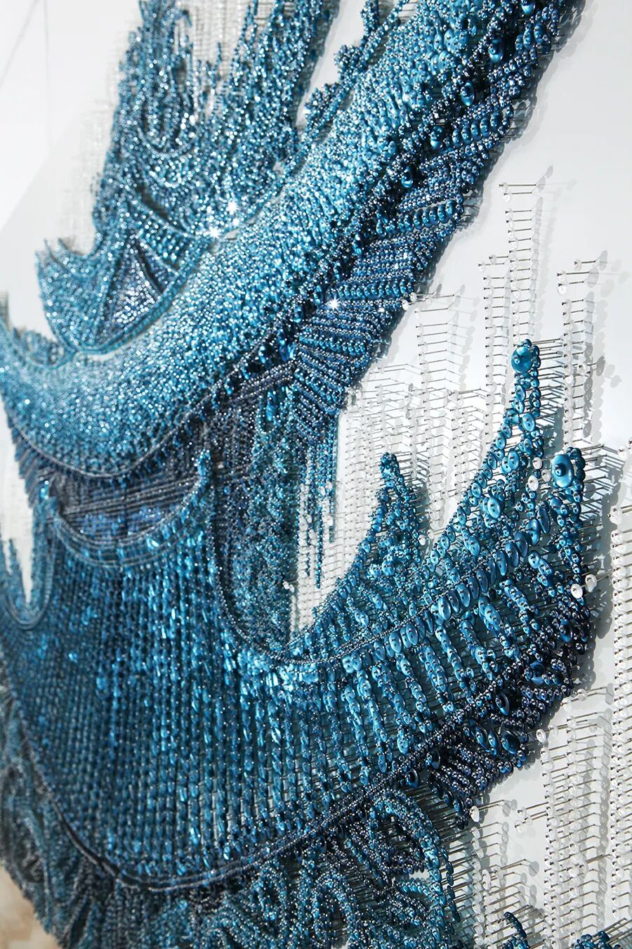 在藝術家眼裡,一切皆藝術,他們總能為平凡的事物注入無限生命力。韓國藝術家Ran Hwang的創作工具是我們日常所見的圖釘。她會拿著一把沉甸甸的小錘,把圖釘一枚一枚地敲進牆壁裡,以圖釘為點陣在牆上作出雋永畫卷。近看,每一枚圖釘都是獨立的生命,傲立於畫卷的每個角落,就像我們每個人獨立行走於人世間一樣。遠觀每幅作品,都錯落有致、獨具匠心,凝聚成它特有的生命力。