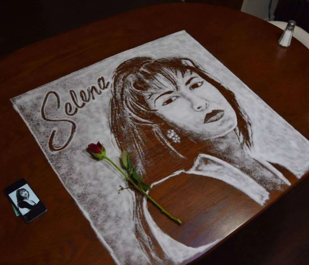 想不到鹽除了調味還能用來作畫吧?來自美國聖安東尼奧市的藝術家羅伯·費雷爾(Rob Ferrel)用鹽創造逼真的肖像畫,他把鹽倒在桌上,然後用刷子把鹽堆攤刷開,並根據想要的作品在桌上掃刷,最後用卡片紙清理多餘的鹽並修整線條。