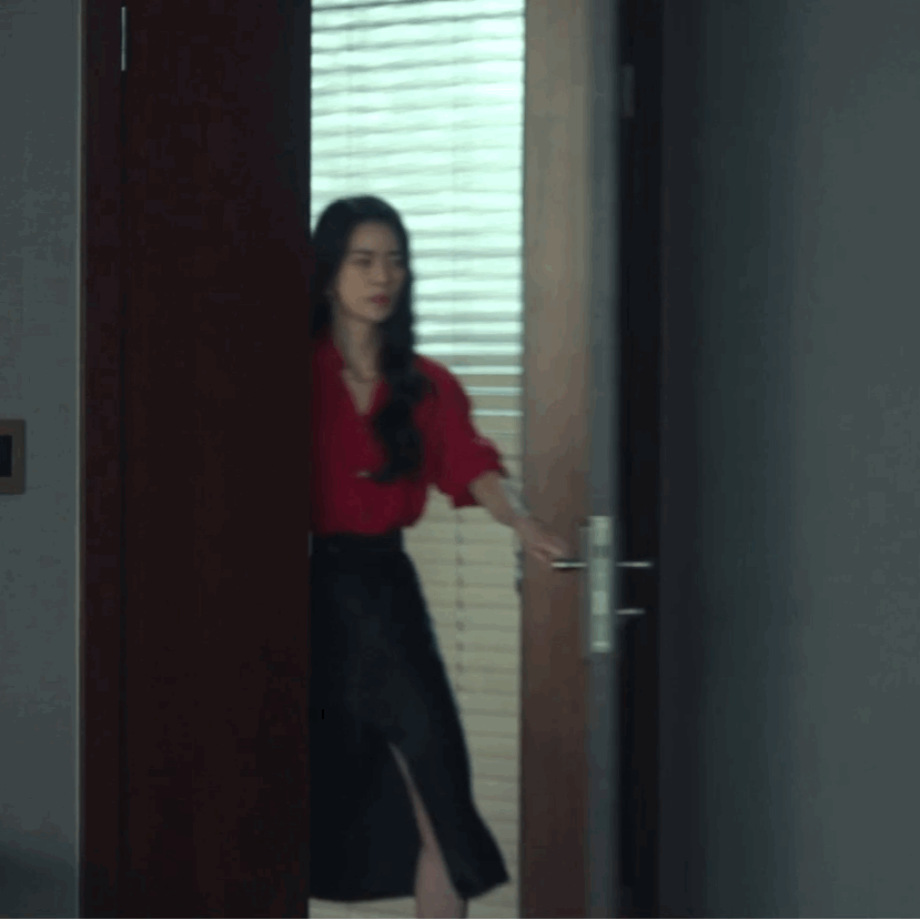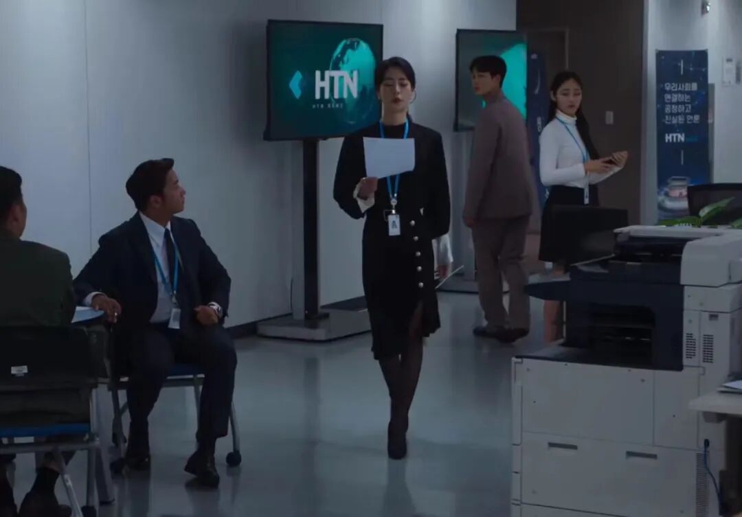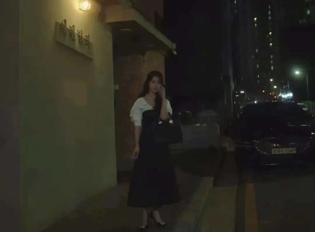當妍珍做的事暴露之後,這些顏色便不見了,黑白成為了她穿搭的主旋律,但設計感依舊存在,黑色的這一套半裙被裝飾上了金屬紐扣,很精緻!