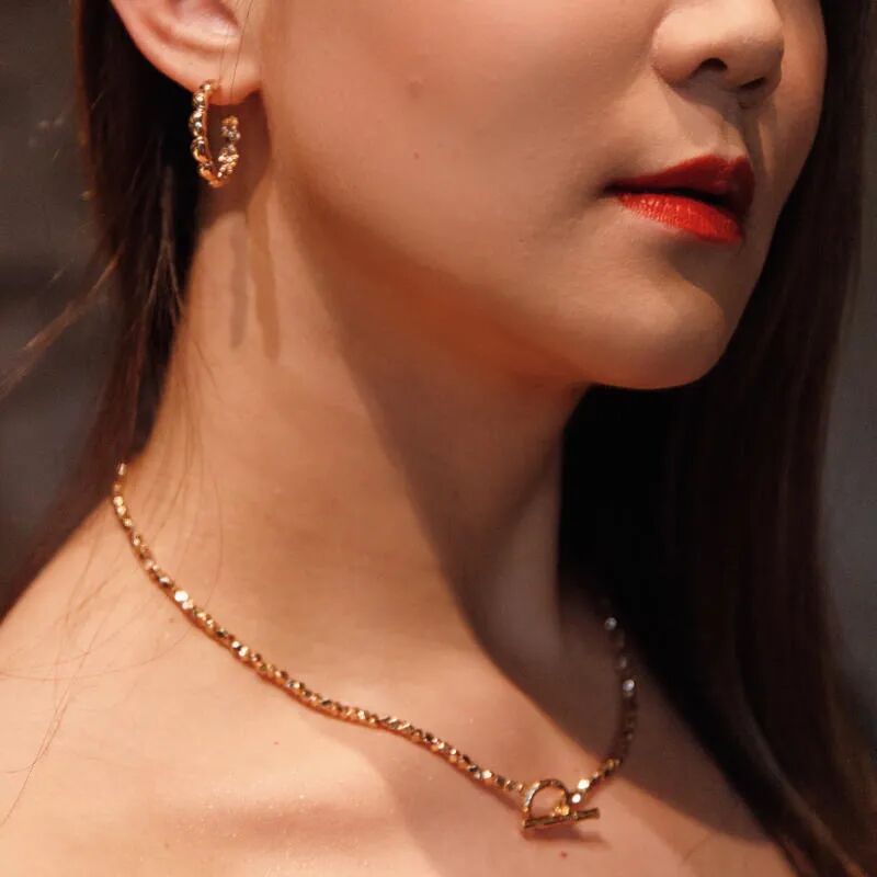 這對就屬於有分量感的小尺寸hoops,扭紋設計也能為質感加分。