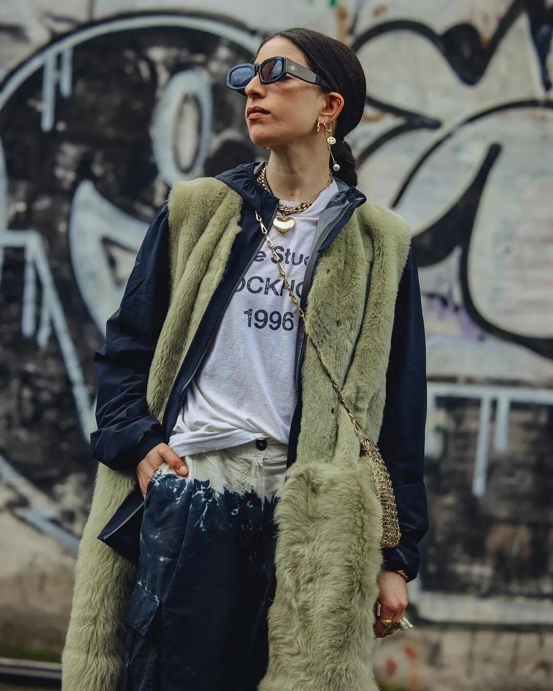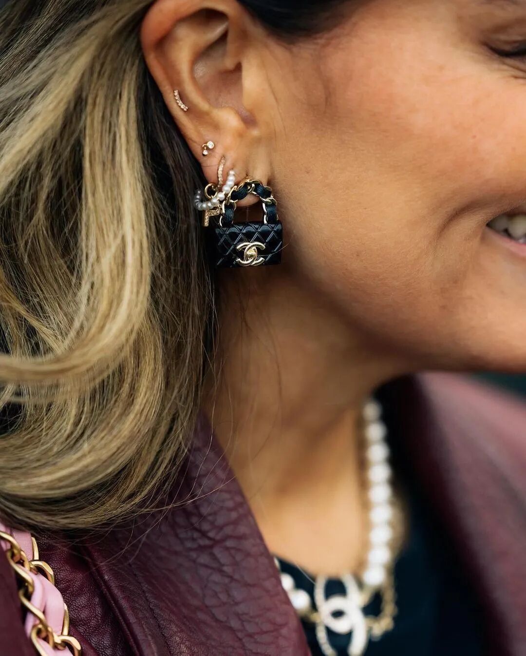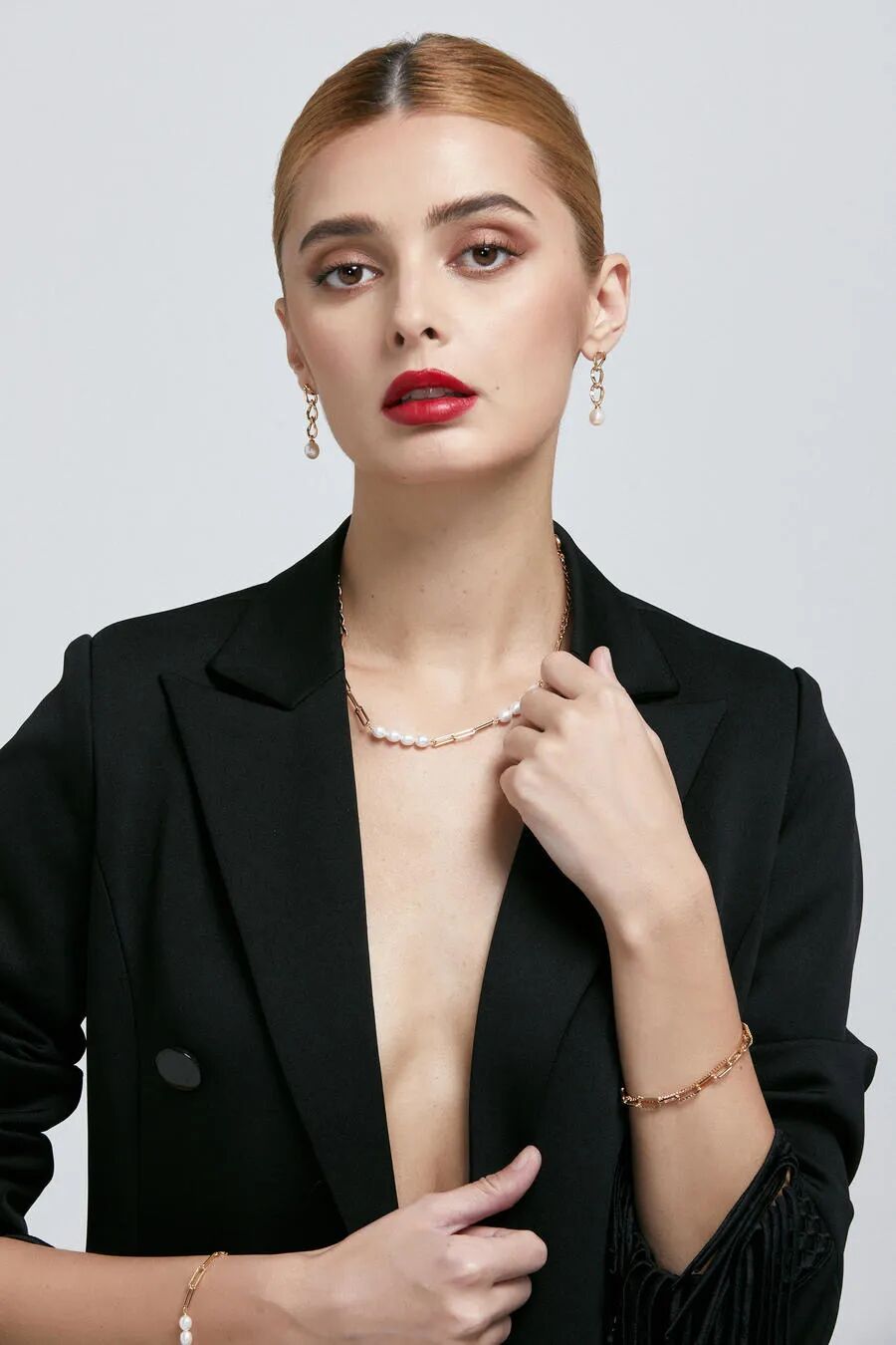 這對“小金心+珍珠”的耳環也很有趣,中間連接的鏈條可以拆下來,在耳環和耳釘之間切換。