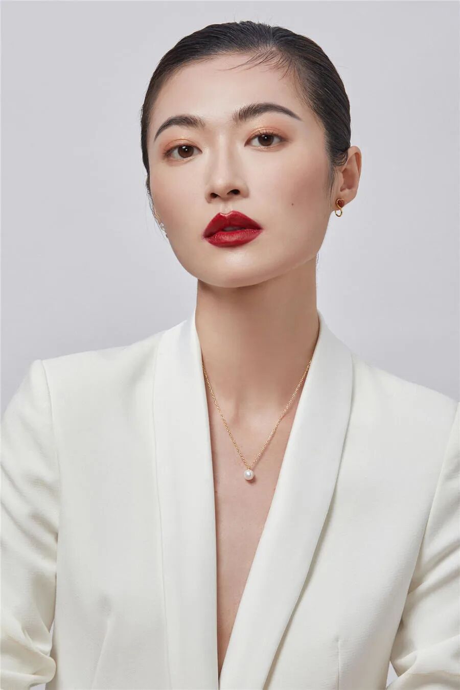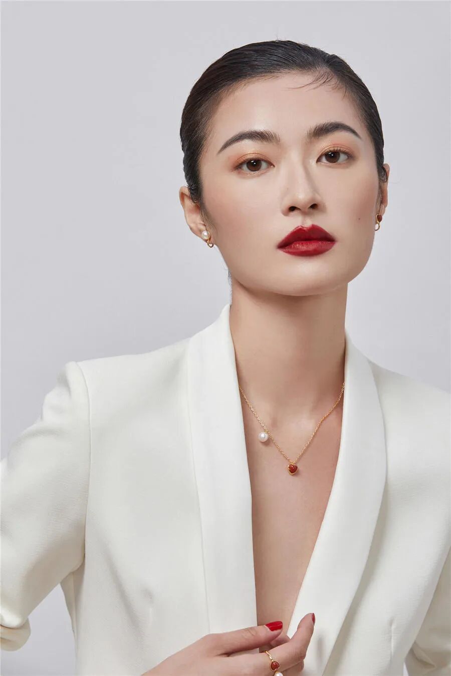 這條“小金心+珍珠”的項鍊和上面的耳環設計思路很像,能解鎖不同的戴法,還可以當手鏈。