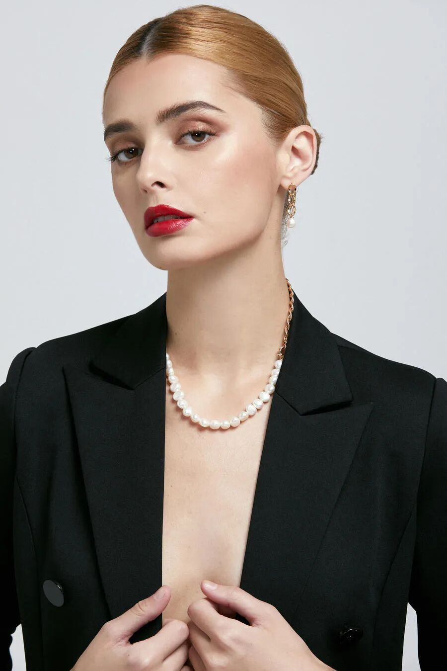它還有兩款選擇,一款是巴洛克珍珠,風格復古華貴,另外一款是米粒珍珠,風格更偏時尚,二選一建議選擇米粒珍珠款,搭配空間更多。