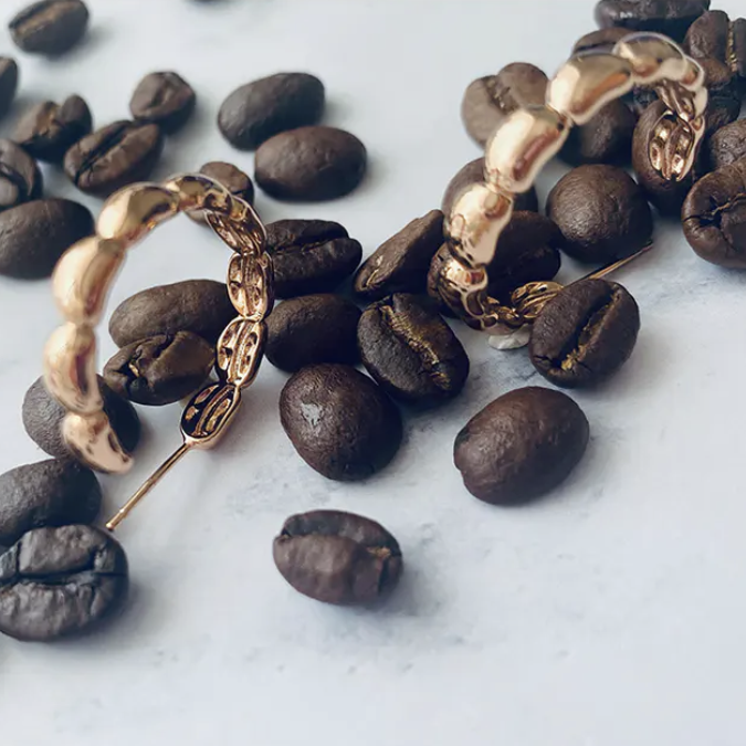 這對耳堵有顆小珍珠,可以正反兩戴,耳圈是一顆顆“咖啡豆”組成的,整體和細節都很有設計感!