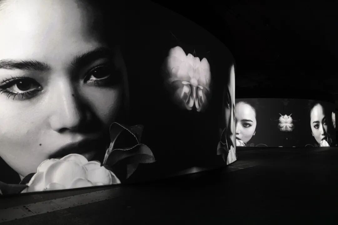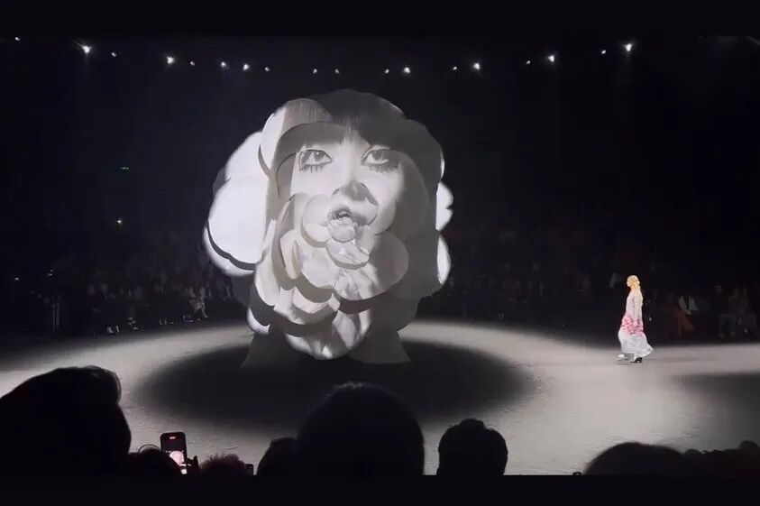 CHANEL 這次也給了小松極高的待遇,邀請她作為主面孔拍攝了秀前的預熱視頻。她的巨幅海報出現在秀場內的各個角落,場內的巨大山茶花上,一直循環映著她的臉。