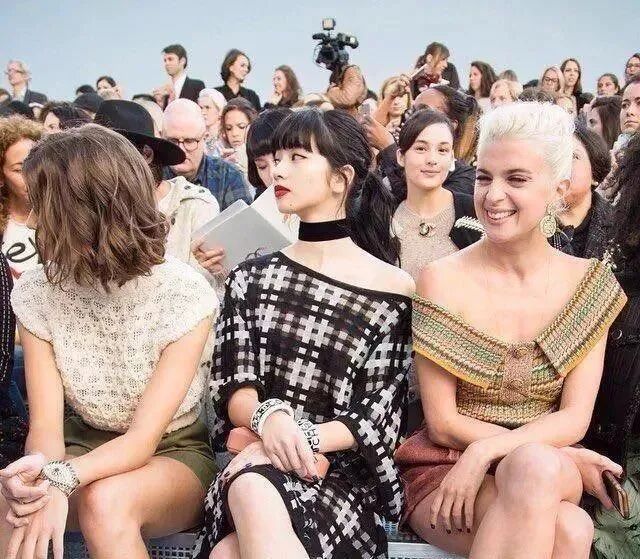 蘇打大概是第一次來巴黎看秀,乖乖坐在小松身邊做好 “綠葉”,絲毫不跟老婆搶風頭。