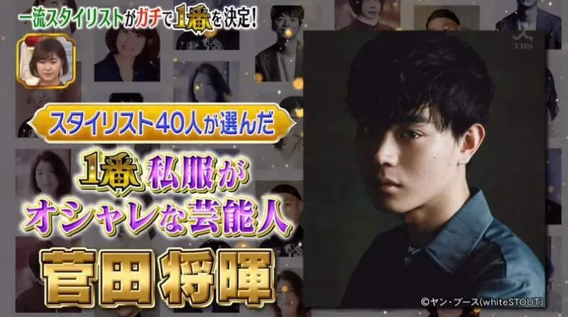 2020 年日本一檔綜藝節目中由 40 位日本頂級造型師票選“私服最時尚男星”,第一名就是菅田將暉。