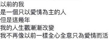 說自己人生觀改變,以前覺得愛情是全部,現在不想只為愛情而活。