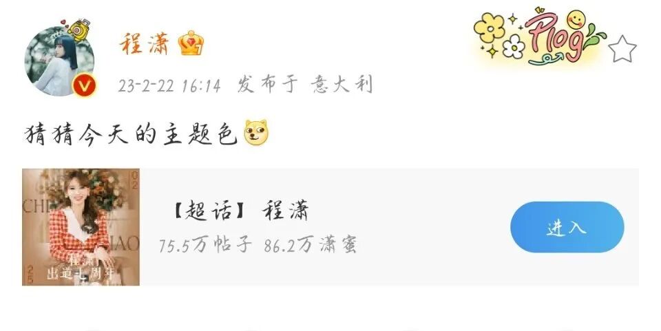 程瀟空降超話發帖22條,互動16條,從天氣聊到看秀造型。