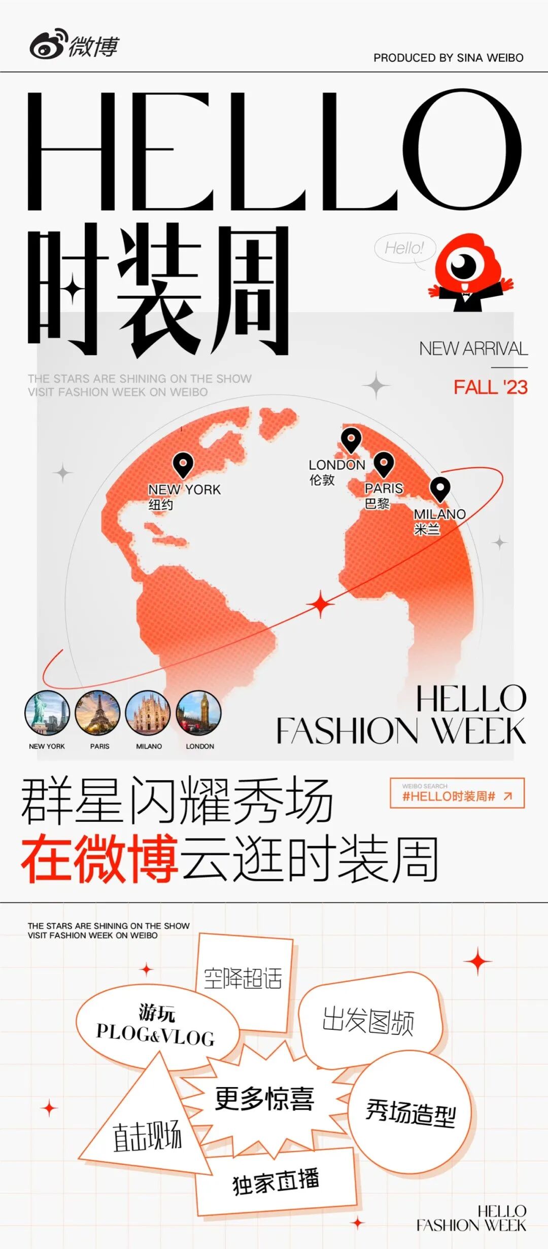 為此,微博明星推出#hello時裝週#項目,直擊熱點,從出發圖頻、現場直擊、秀場造型等各方面,讓“群星閃耀秀場,在微博雲逛時裝週”。